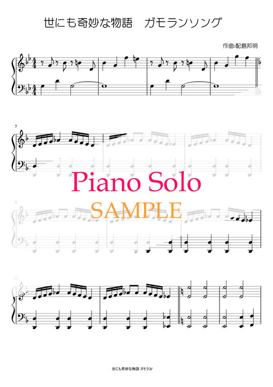 TV番組『世にも奇妙な物語』のBGM「ガモランソング」をピアノソロ譜にしました。