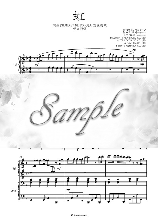 映画『STAND BY ME ドラえもん 2』主題歌、菅田将暉の虹をピアノ連弾にしました。
