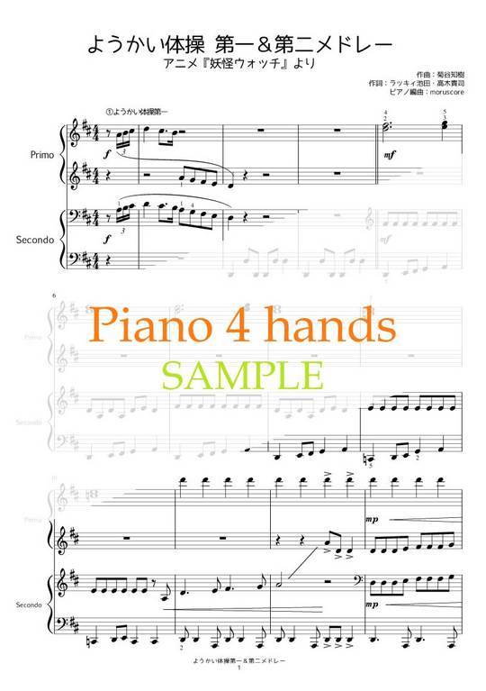 アニメ『妖怪ウォッチ』の「ようかい体操第一」「ようかい体操第二」を連弾でメドレーにしました。PDF5ページ。