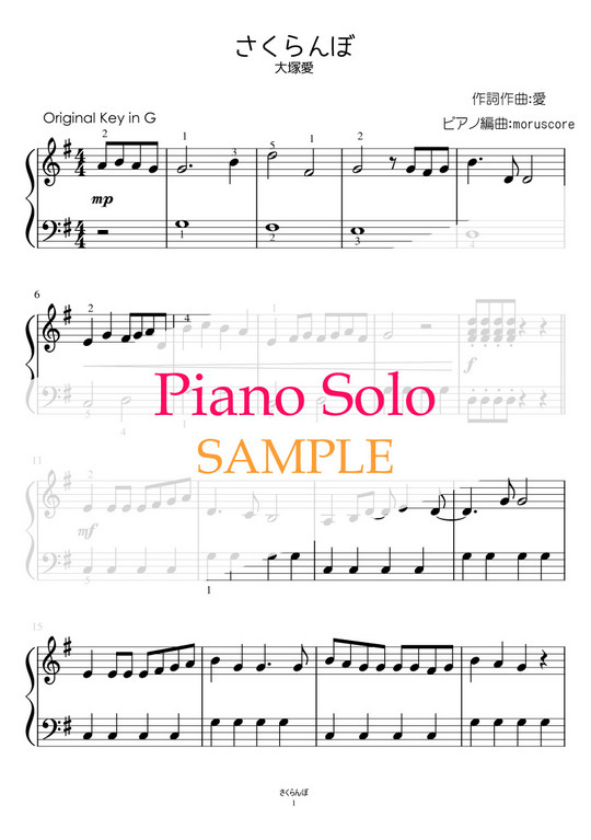 大塚愛さんの『さくらんぼ』をピアノ譜にしました。