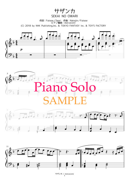 NHK平昌オリンピック・パラリンピック テーマソング、SEKAI NO OWARIさんの『サザンカ』をピアノソロにしました。