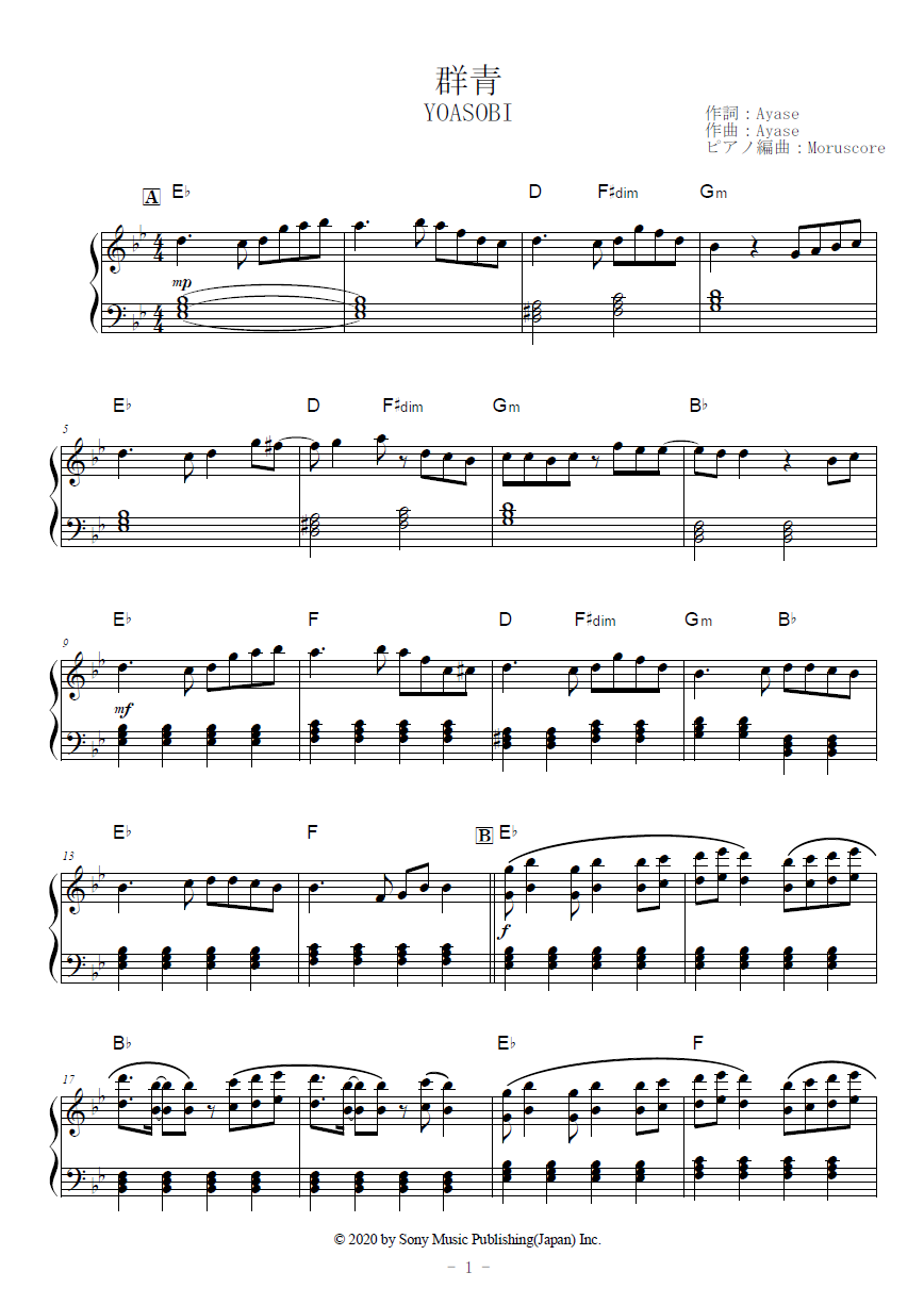 左手の譜読みが苦手な方にも出来るだけ弾きやすく弾けるようにコードの三和音でパターン化した楽譜を作成しました。